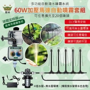 1.定時澆水器連動加壓馬達款 : 適用於低水壓環境或噴頭數量太多、流量不足,末端無水狀況。