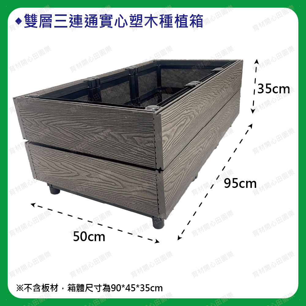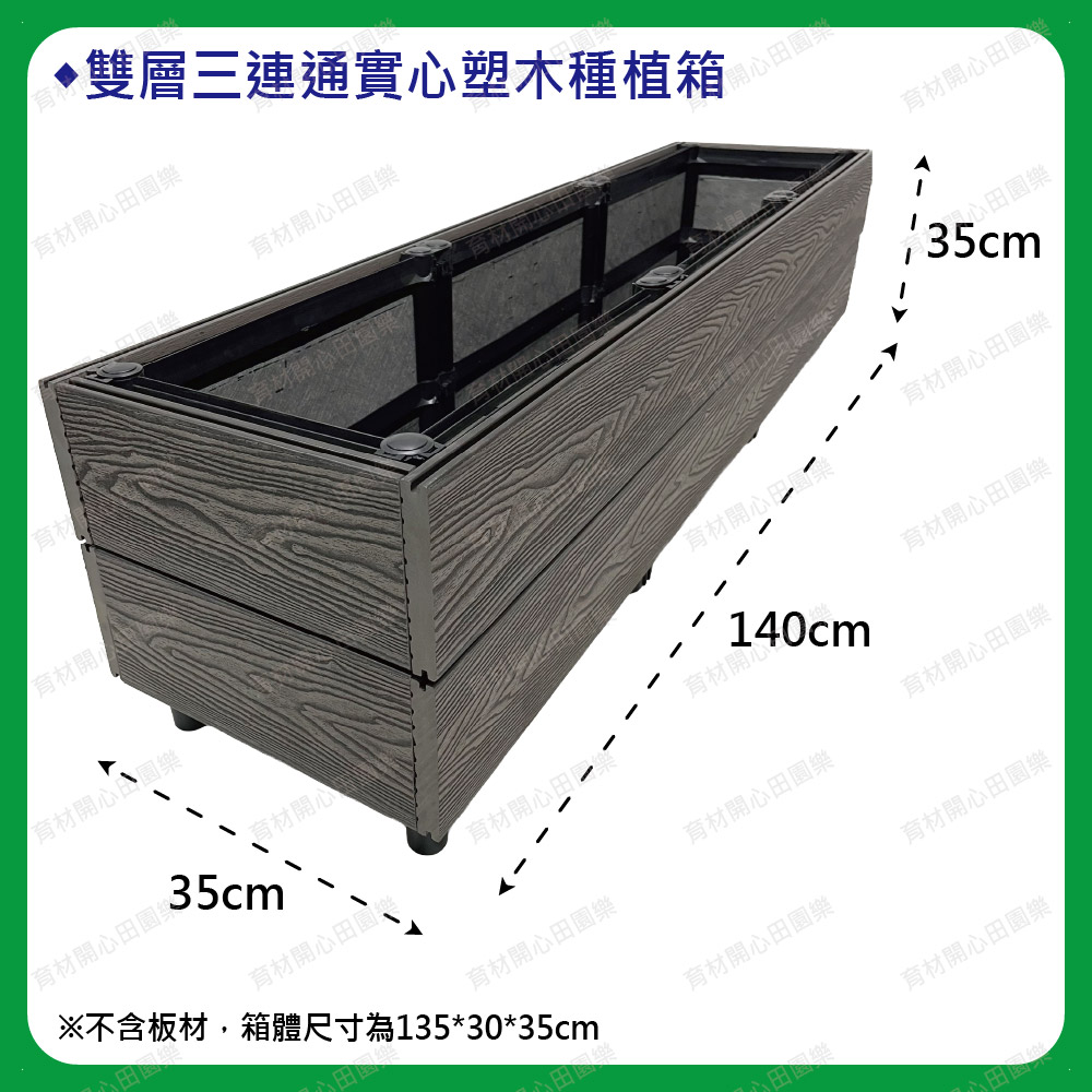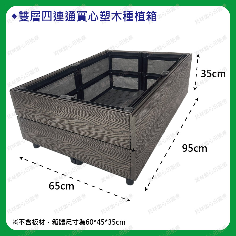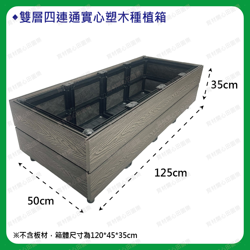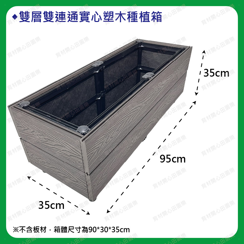 塑木扣片扣入原本的種植箱,實心塑木板厚度2公分--1呎160元雙層箱組裝後總高皆為35cm1尺=30公分
