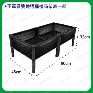 尺寸為90*45公分,正方形底盤設計產品特點:1. 側板分為不織布側板、網孔側板、密側板,依需求可選擇不同種類側板不織布側板: 防止土壤流失並兼顧排水性網孔側板: 網孔通風性可加速土壤乾燥密側板: 外觀不卡汙泥且保水性極佳2.底部中間多一個支撐點可支撐3.可多個拼接組合