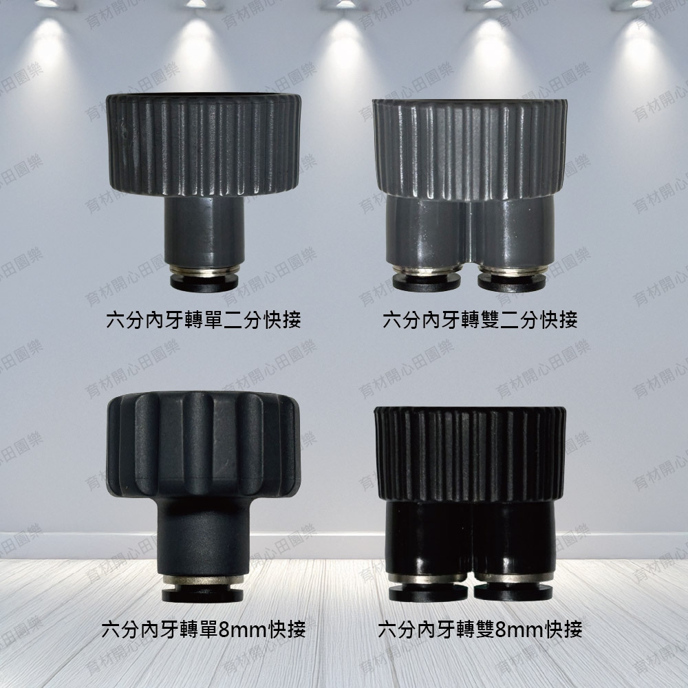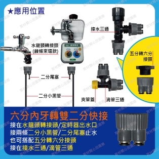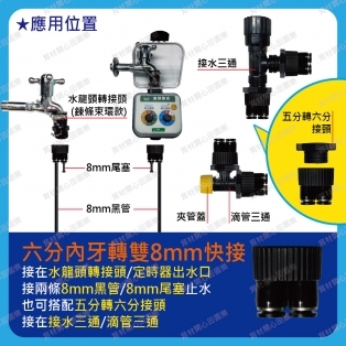 六分內牙轉單(雙)二分/8mm快接接在水龍頭轉接頭/定時器出水口接二分小黑管/8mm黑管