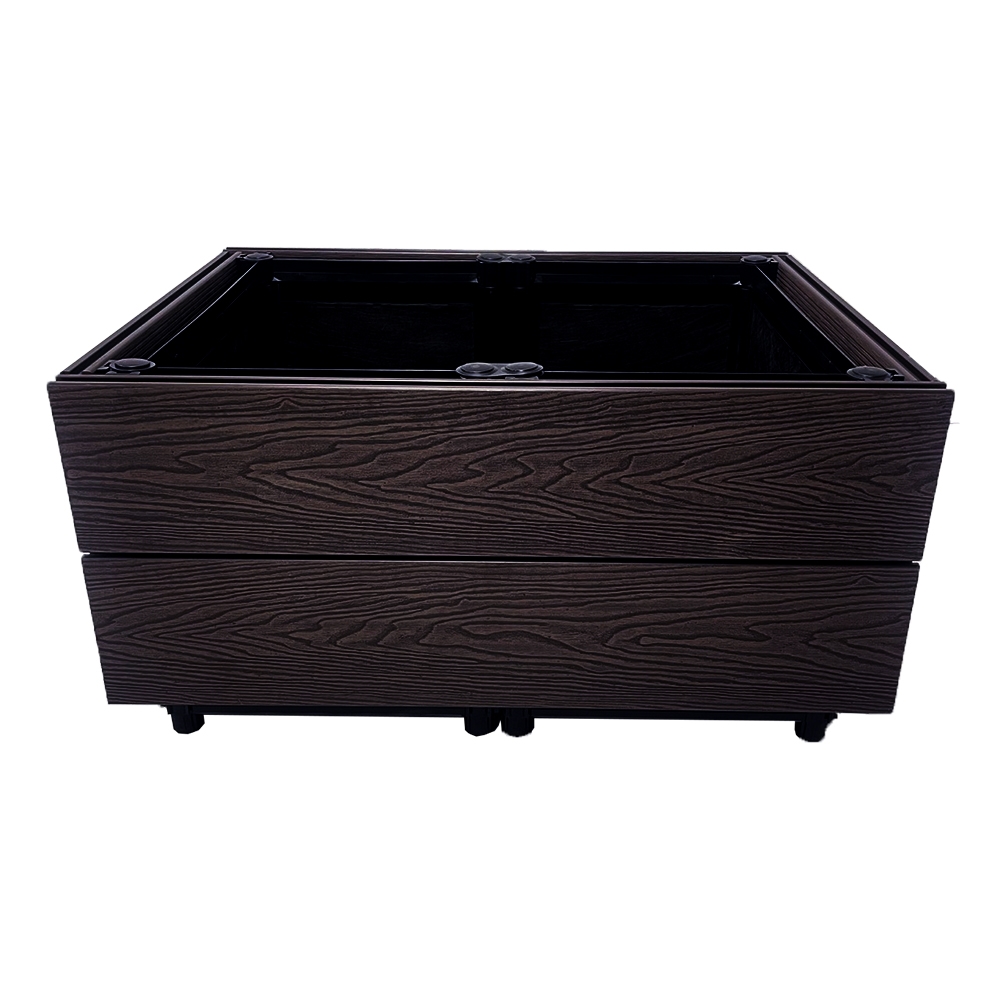 塑木扣片扣入原本的種植箱,空心塑木板厚度2.5cm:1尺120元雙層箱組裝後總高皆為35cm(1尺=30公分)