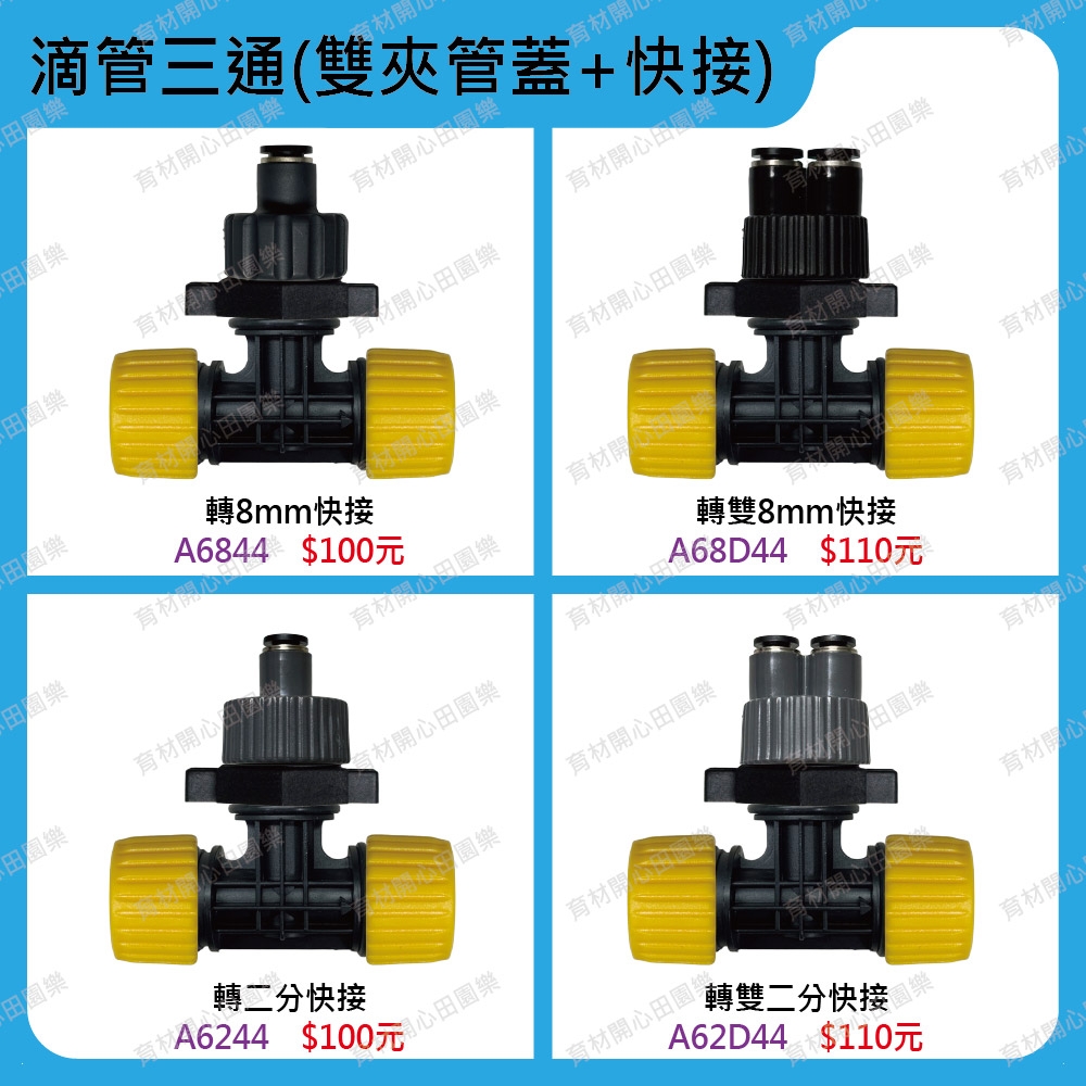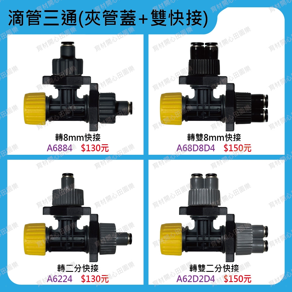 四分軟管,例如:四分耐壓管(型號:A04)、四分PE管(型號:I1)轉接二分小黑管(型號:A02)或8mm黑管