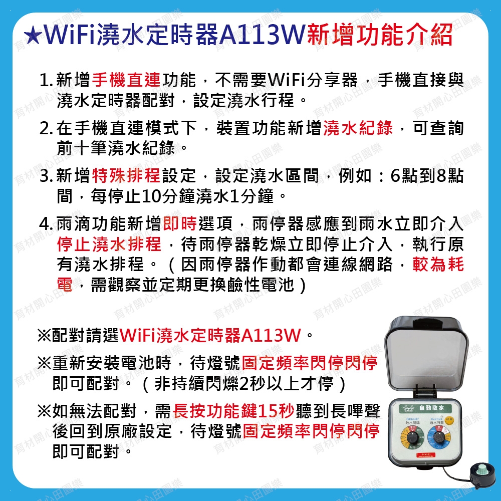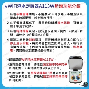 ▽即日起機身型號為A113W者,登入APP選擇連線裝置時,請選擇[WiFi澆水定時器 A113W]。