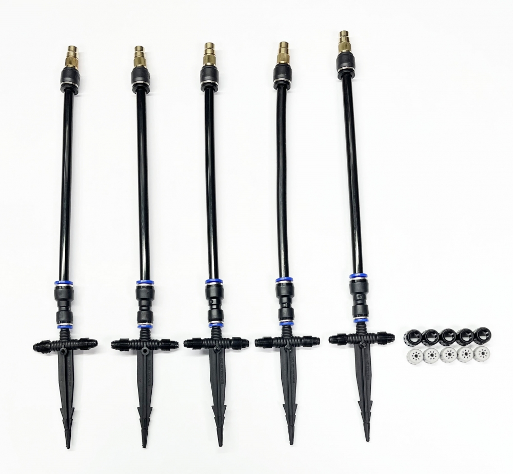 *建議一道小黑管串接5支即可。再多可能因水壓噴霧效果不佳,可另外參考小型加壓馬達。