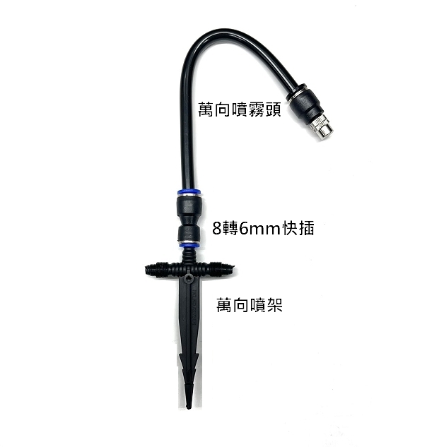 萬向可調噴霧頭+萬向噴架(該噴架上方接點已內建快接)*1
