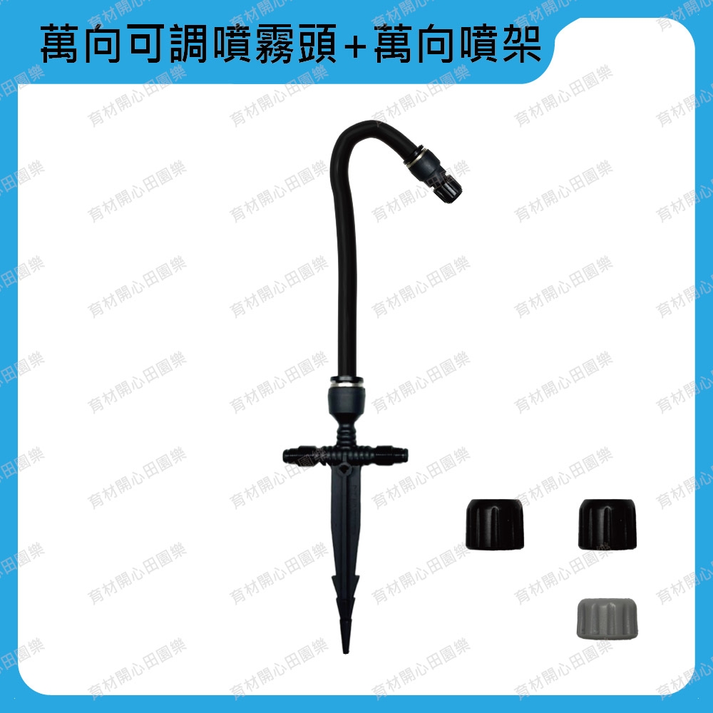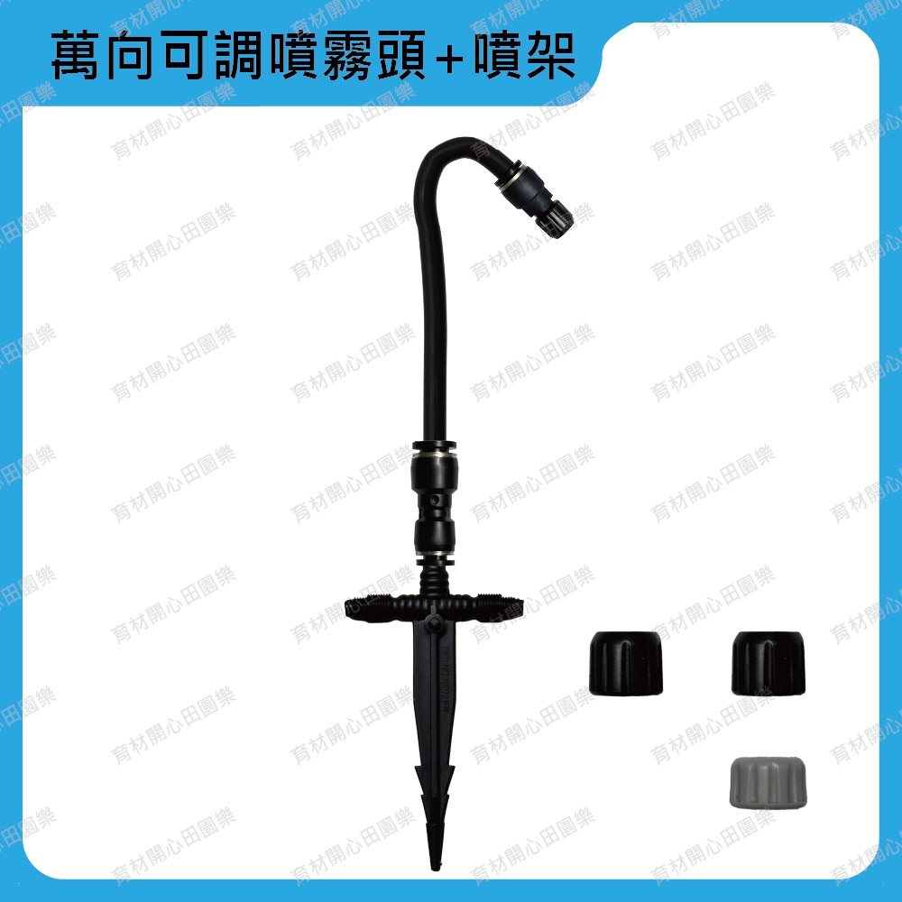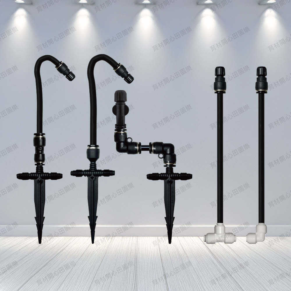 可靈活組裝調整各種角度噴霧。下方有噴架可插入土壤固定位置。