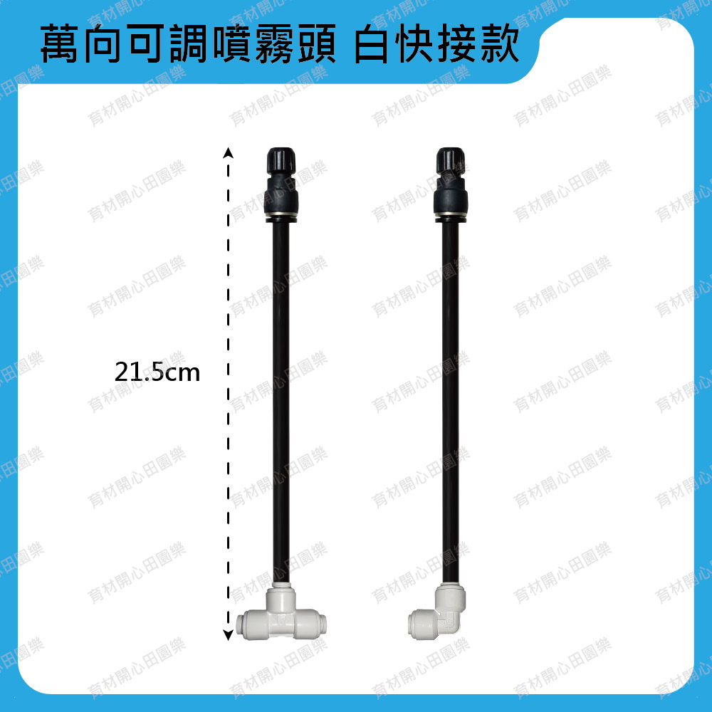 已配好三通快接(白T型)、二通快接(白L型),可直接安裝育材自動澆水套組用二分小黑管。