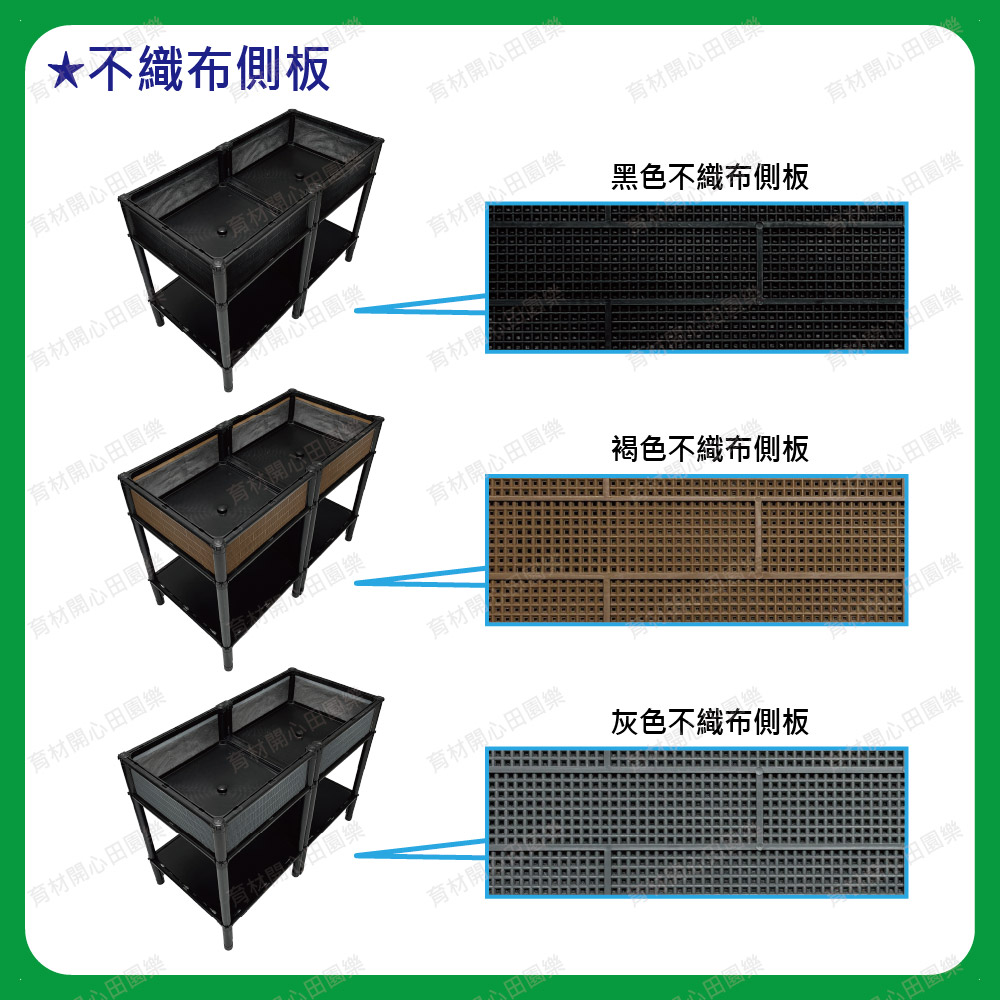 1. 側板分為不織布側板、網孔側板、密側板,依需求可選擇不同種類側板