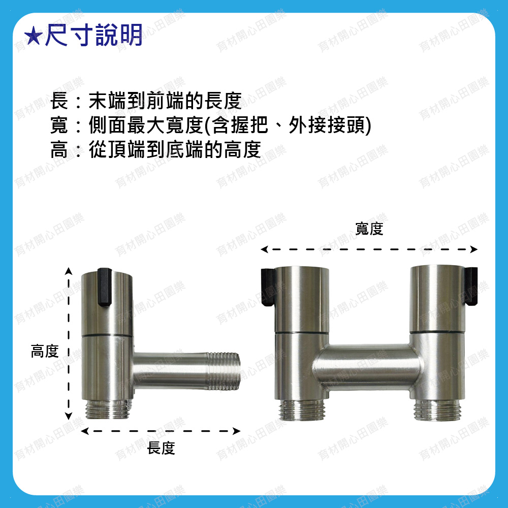 “歐規外牙”為台灣常見PVC水管牙以及“育材自動澆水定時器”專用。