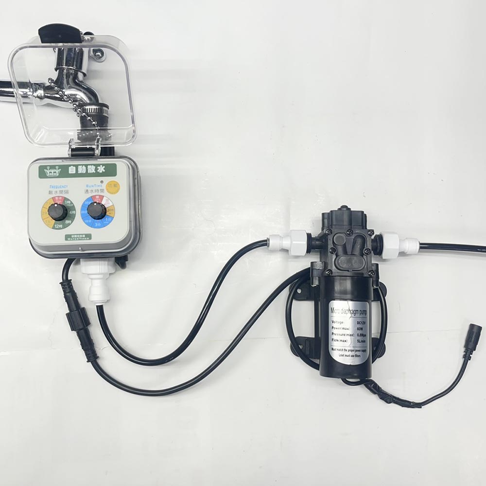 1.定時澆水器連動加壓馬達款 : 適用於低水壓環境或噴頭數量太多、流量不足,末端無水狀況。