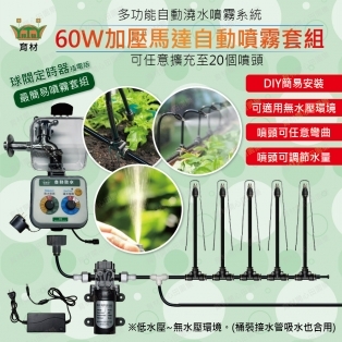 1.定時澆水器連動加壓馬達款 : 適用於低水壓環境或噴頭數量太多、流量不足,末端無水狀況。