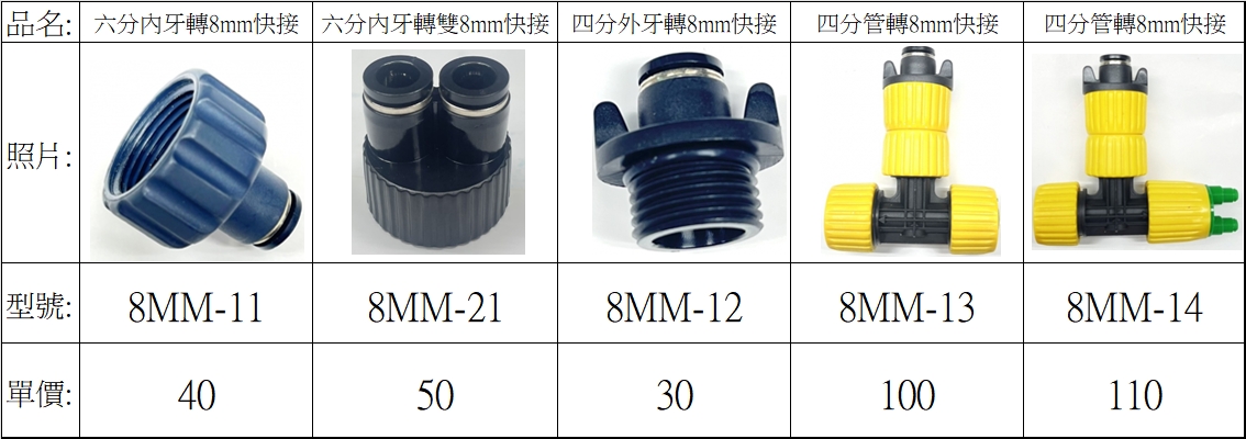 轉接頭系列適用各種管徑轉接8MM噴霧
