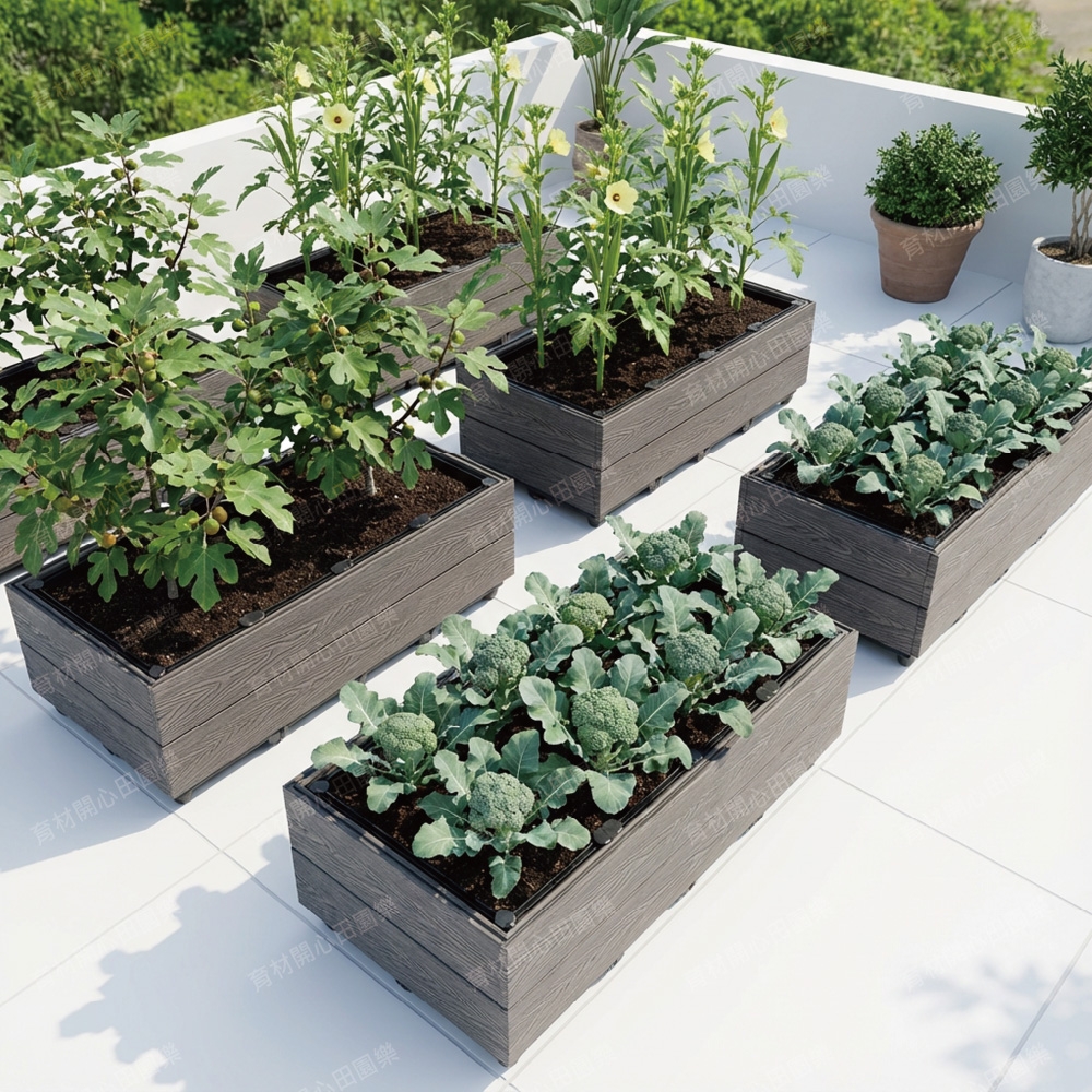 塑木扣片扣入原本的種植箱,實心塑木板厚度2公分--1尺160元雙層箱組裝後總高皆為35cm1尺=30公分
