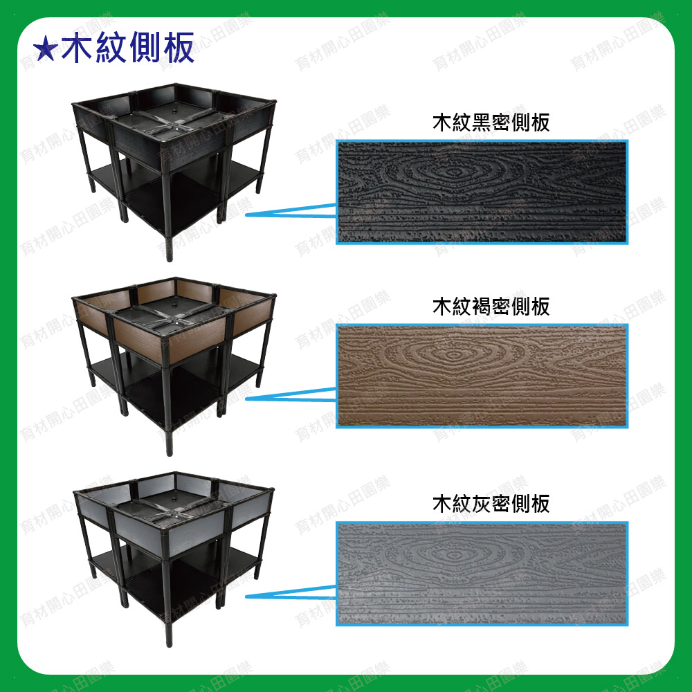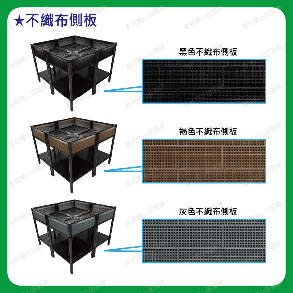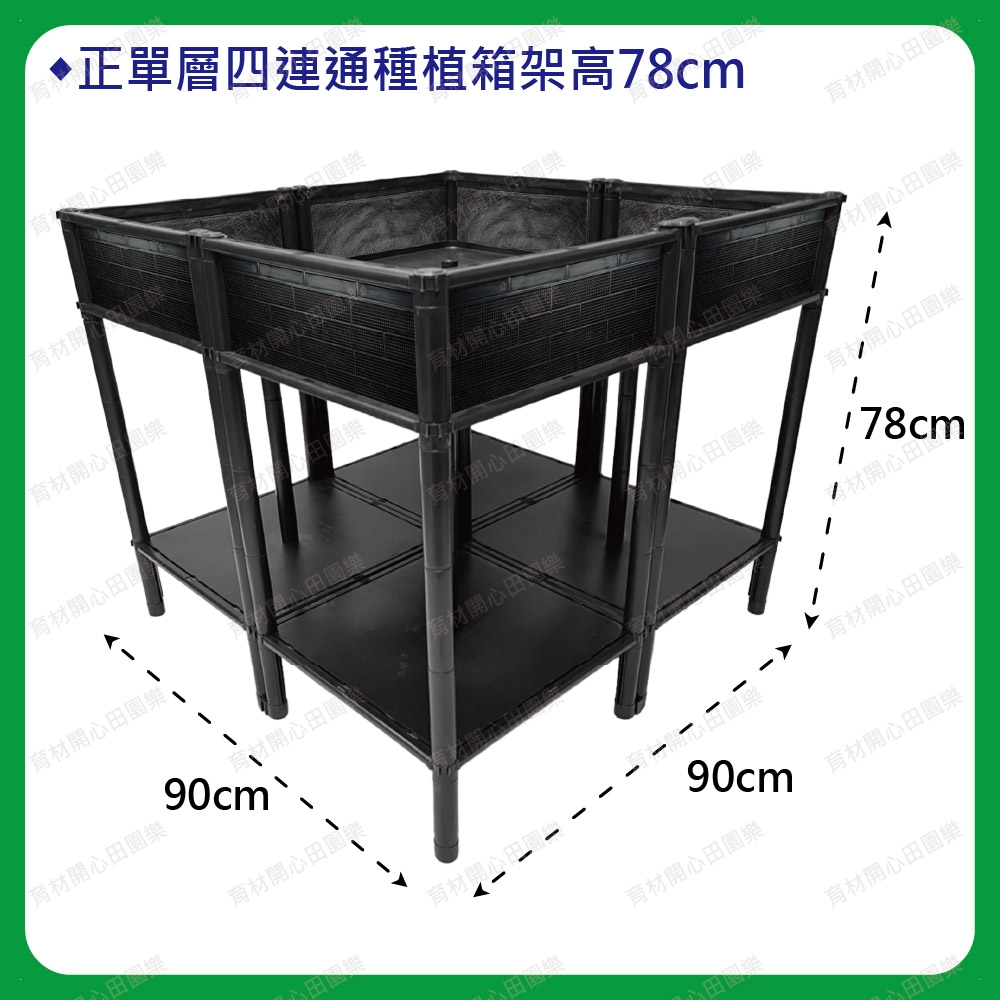 尺寸為90*90公分,底盤為正方形設計45*45cm產品特點:1. 側板分為不織布側板、網孔側板、密側板,依需求可選擇不同種類側板。不織布側板: 防止土壤流失並兼顧排水性。網孔側板: 網孔通風性可加速土壤乾燥。密側板: 外觀不卡汙泥且保水性極佳2.底部中間多一個支撐點可支撐3.可多個拼接組合