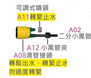 4分軟管對接用,靈活度高只需拆換夾管蓋(型號:A09)及滴管接頭(型號:A08)即可延長四分軟管依選項可接出1道~4道2分小黑管或是三頭都是四分軟管。