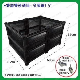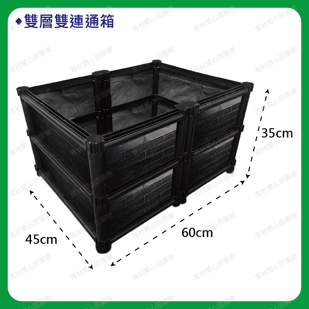 尺寸為60*45*35公分,為雙層尺寸種植箱產品特點:1. 側板分為不織布側板、網孔側板、密側板,依需求可選擇不同種類側板 不織布側板: 防止土壤流失並兼顧排水性 網孔側板: 網孔通風性可加速土壤乾燥 密側板: 外觀不卡汙泥且保水性極佳2. 建議加購蓄排水板, 可達土水分離3. 箱子較深,適合種植深根植物及花卉等