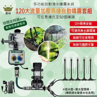 需搭配水桶吸水或電磁閥開關水,使用家用電子定時器設定時間開關。