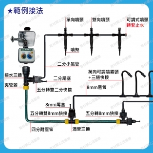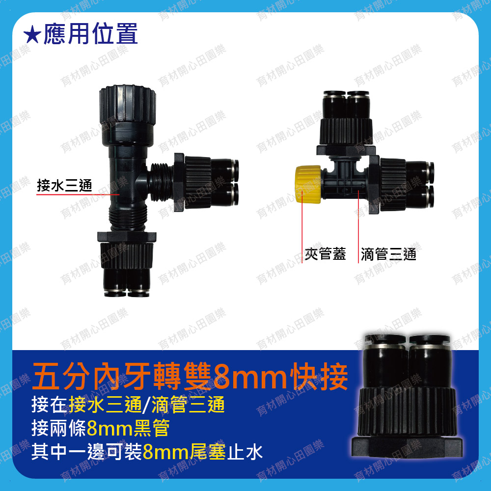 雙8mm快接,可接8mm黑管,或裝8mm尾塞止水