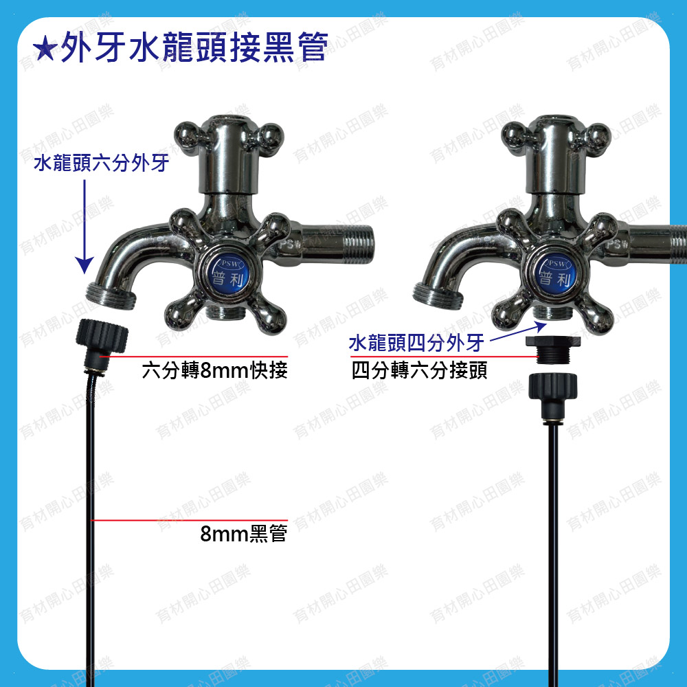 也可另外購買外牙水龍頭接8mm黑管