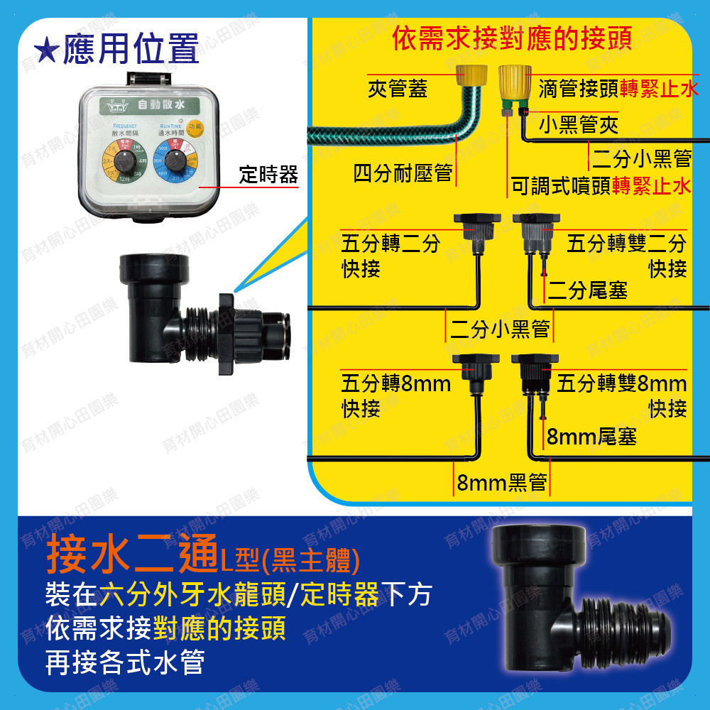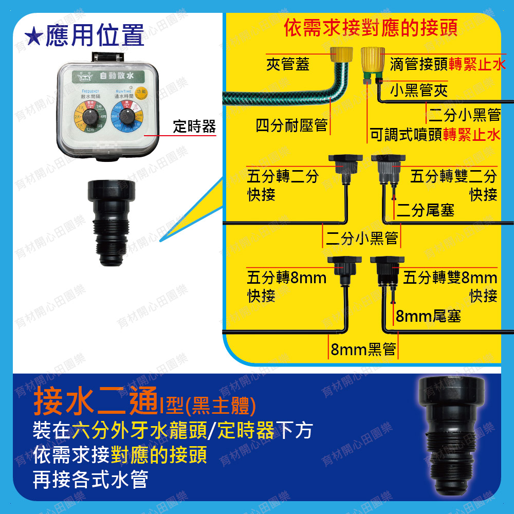 上方為六分歐規內牙出貨如各項規格照片依需求,使用A09夾管蓋接四分耐壓管使用A08滴管接頭/I35-2五分轉二分/雙二分快接接1~2條二分小黑管使用I35-1五分轉8mm/雙8mm快接接1~2條8mm黑管若需單邊出水或水龍頭位置較低者可選購接水二通I型/L型。