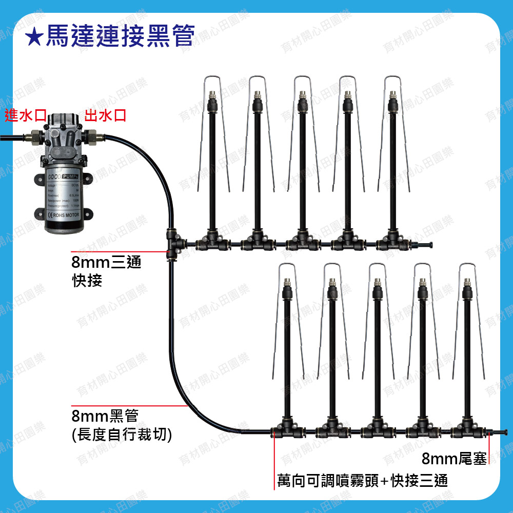 2.定時器內建微動開關,啟動時連動馬達加壓,關閉時同步停止馬達運轉,自動澆水定時器啟動澆水時,連動馬達也會啟動。定時器關閉澆水時,連動馬達一併關閉安裝時需注意進水及出水方向。