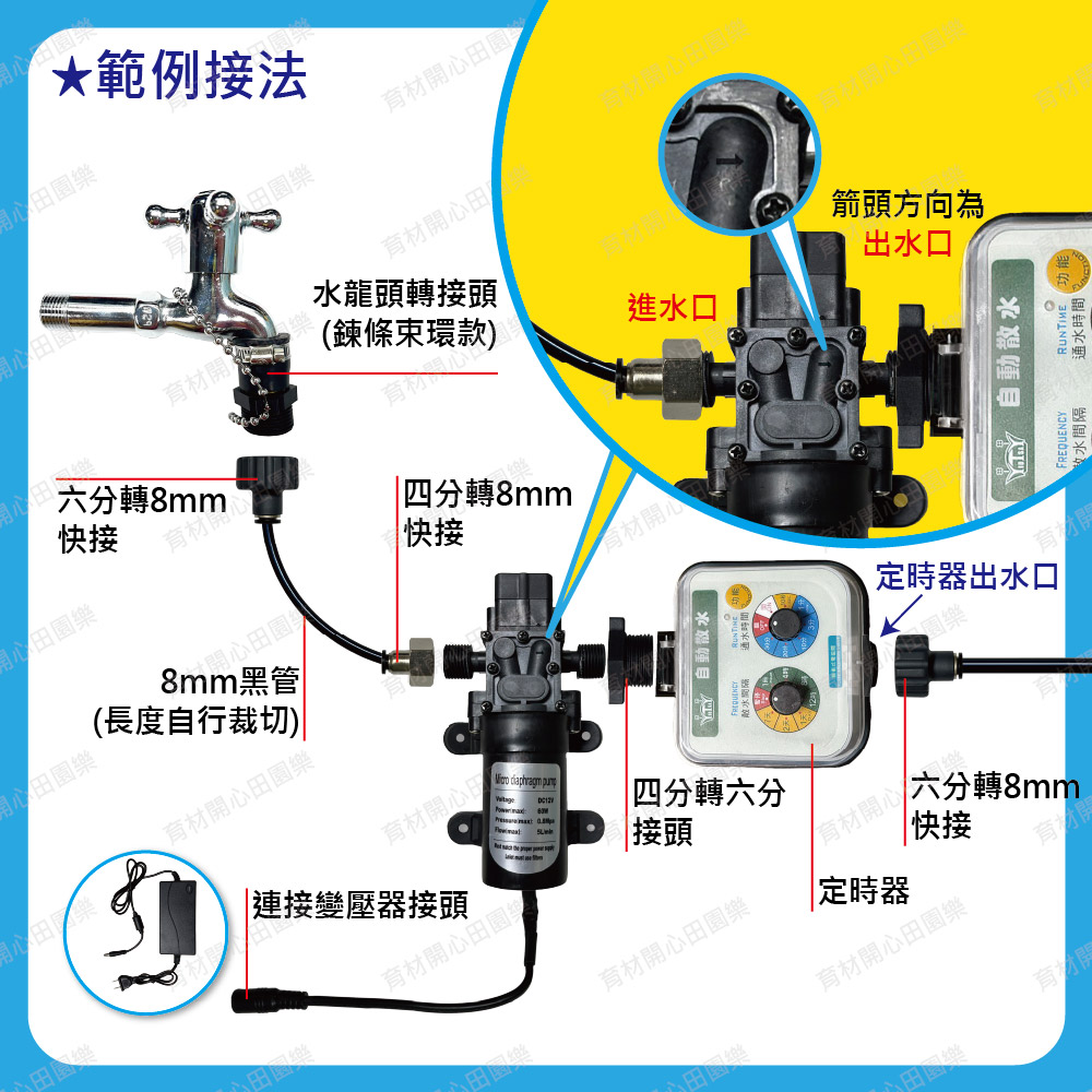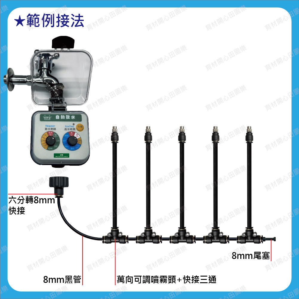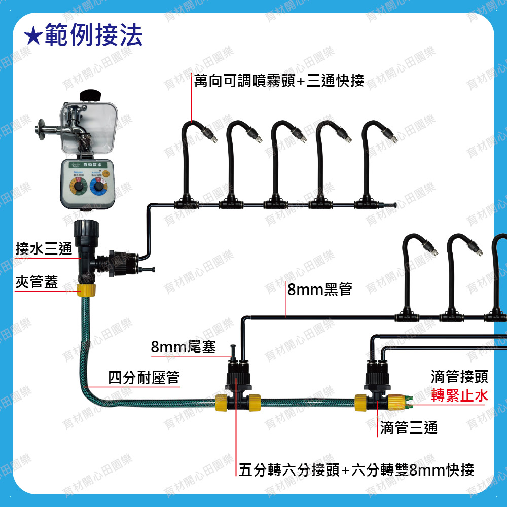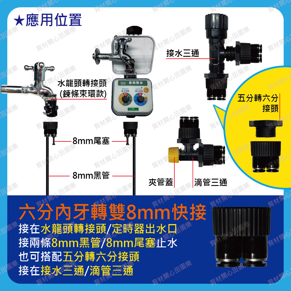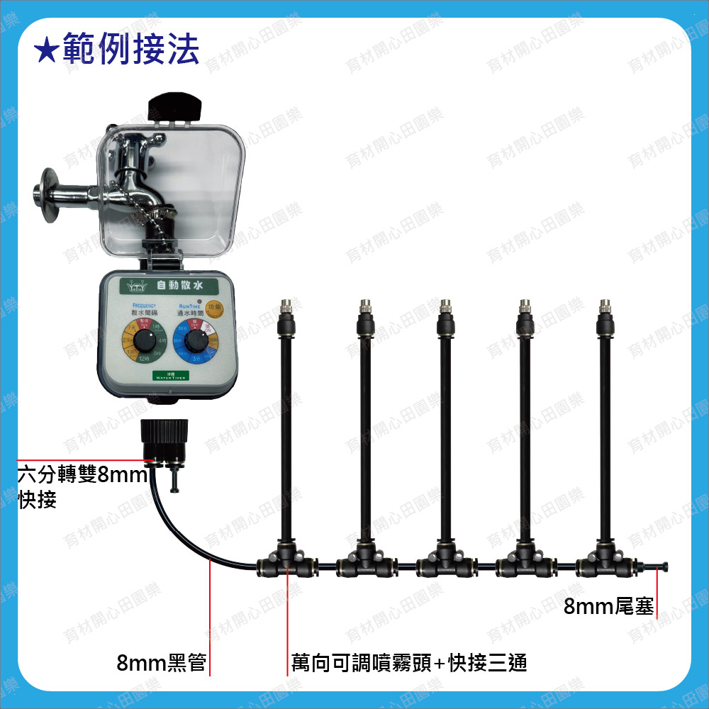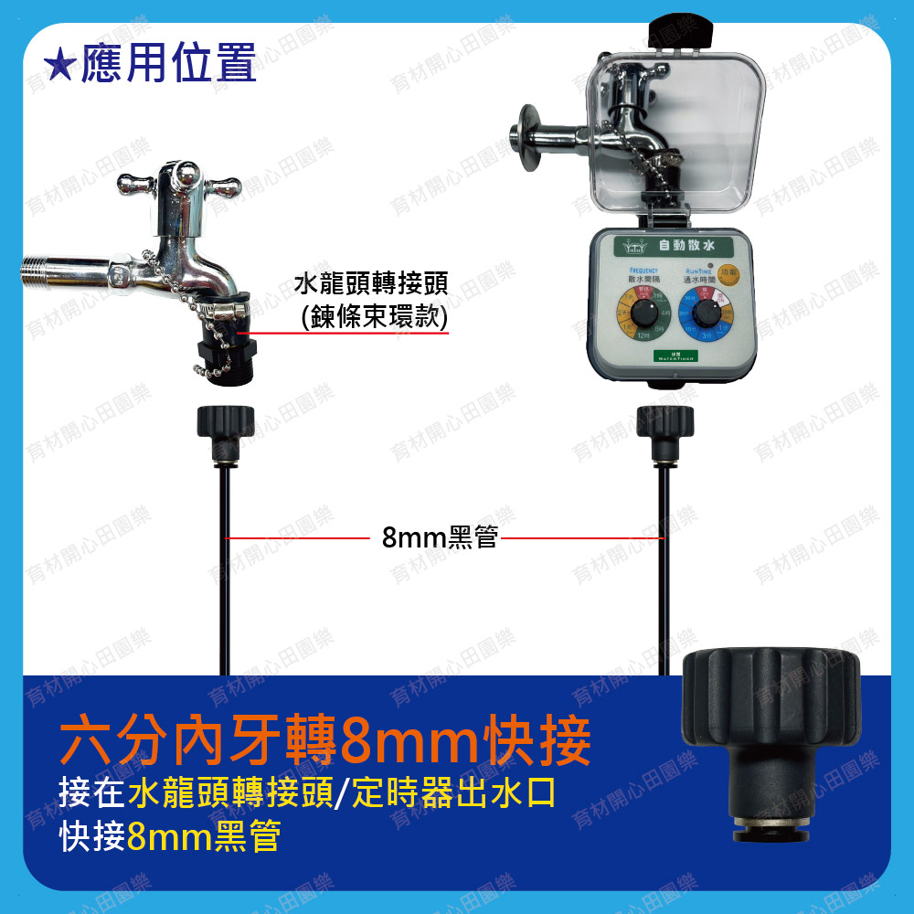 六分內牙轉二分/8mm快接接在水龍頭轉接頭/定時器出水口接二分小黑管/8mm黑管