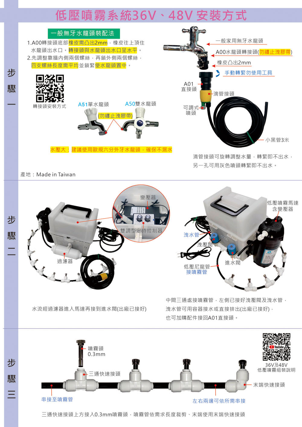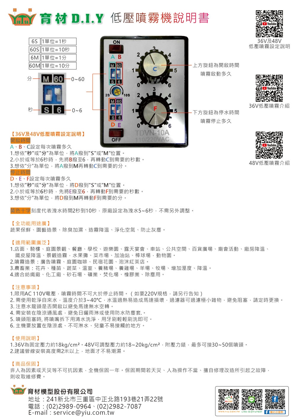 1.限用AC 110V電壓,噴霧時間不可大於停止時間。(如要220V規格,請另行告知)