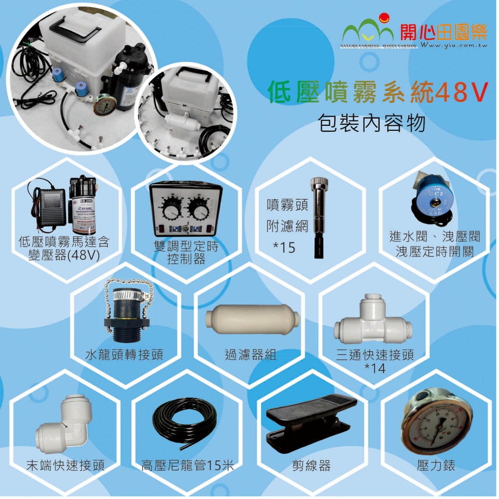 1.低壓噴霧馬達含變壓器(48V)(約20kg/cm2,3L/min)(4000元)