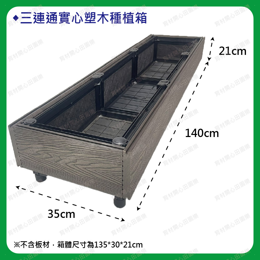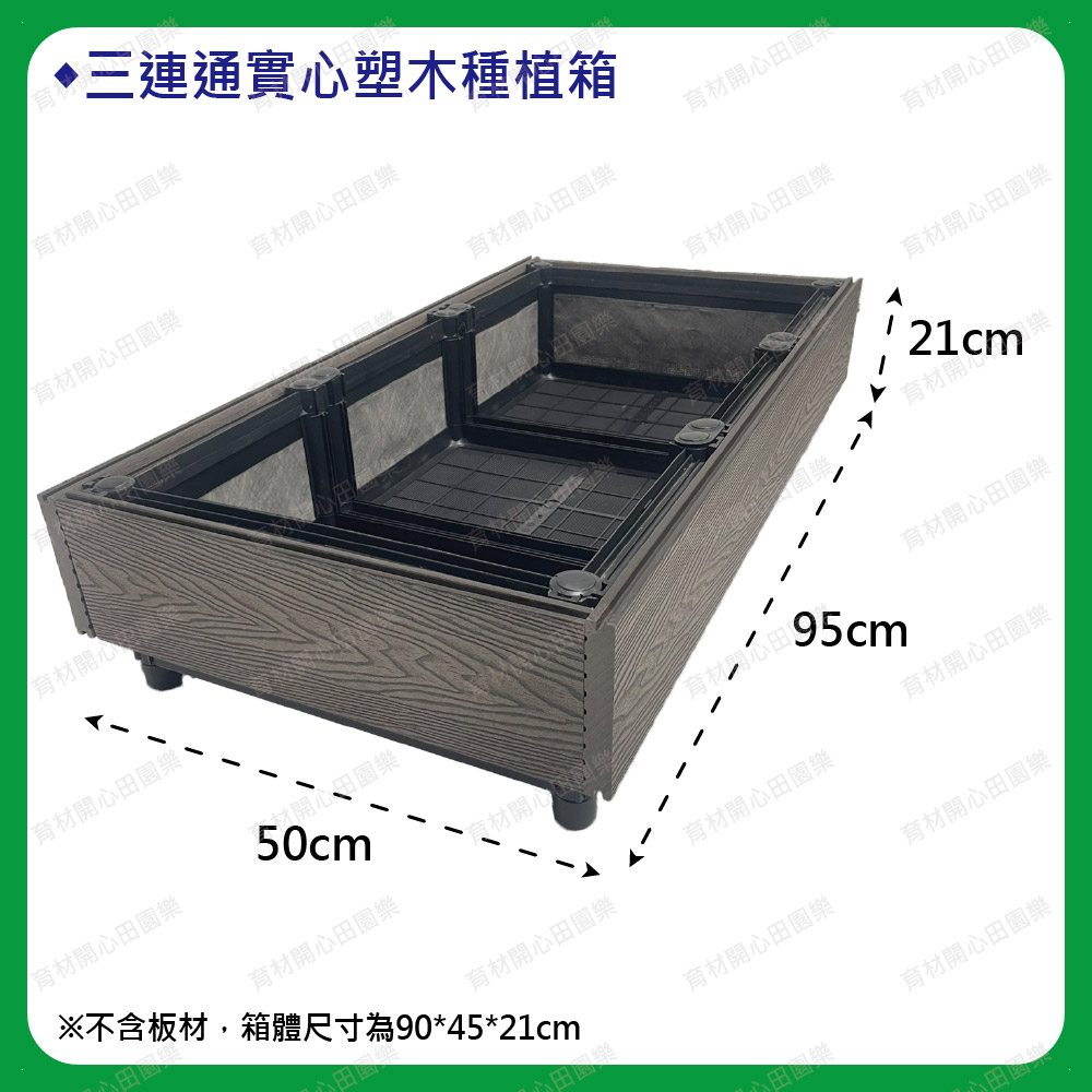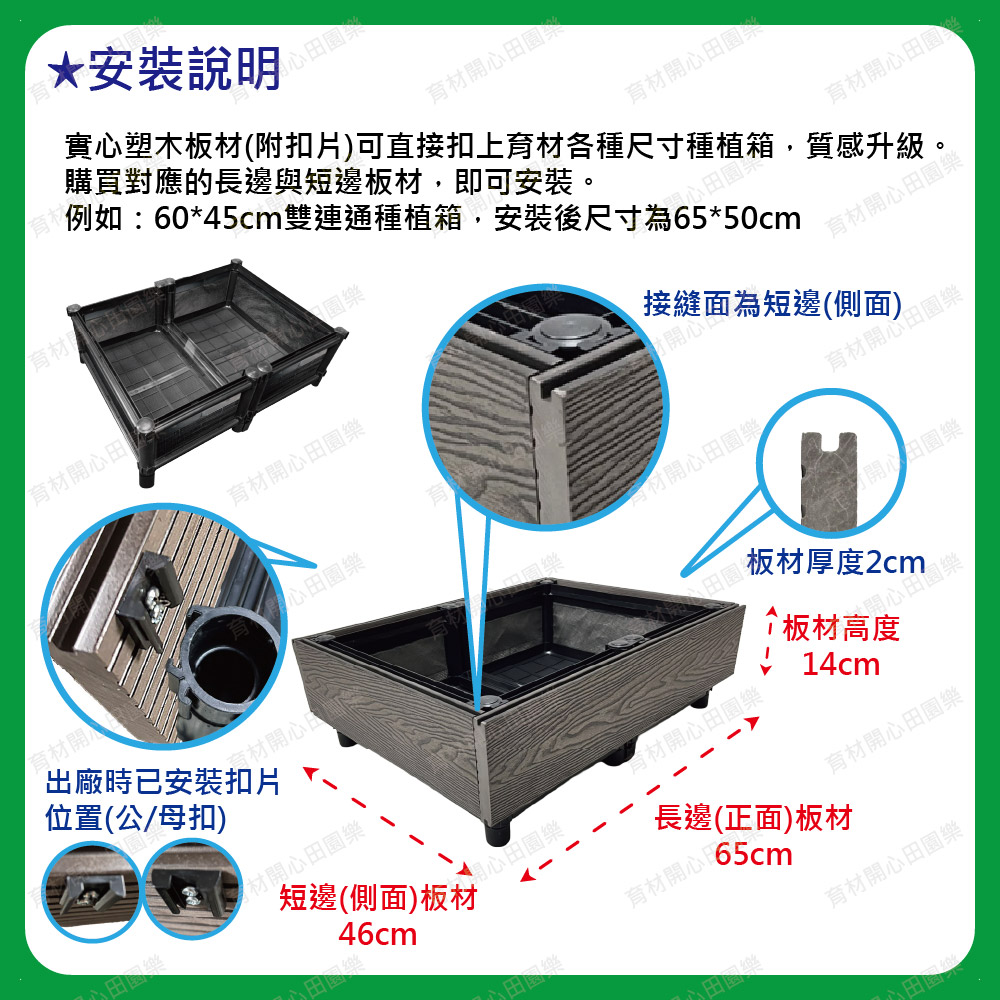 塑木扣片扣入原本的種植箱,實心塑木板厚度2cm:1呎160元單層箱組裝後總高皆為21cm1尺=30公分
