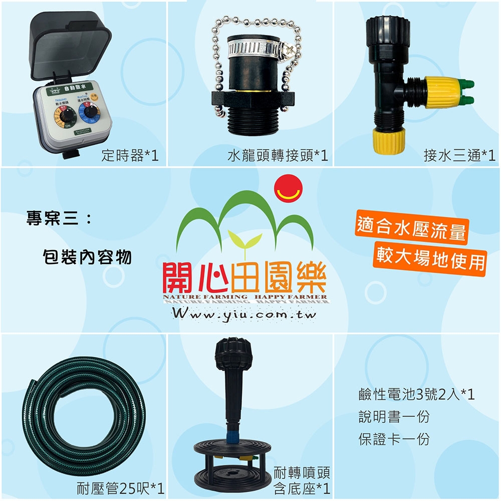 適用:大面積草坪或屋頂使用,可加購噴頭(型號:B04)及耐壓管串接。